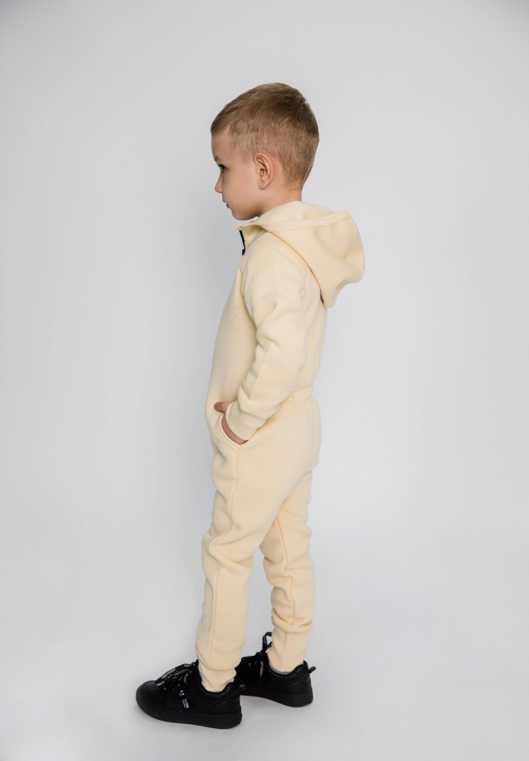 318-СЛ. Комбинезон на молнии с капюшоном, сливочный, хлопок 65%, 35% ПЭ, 3 нитка толстовка (начёс) 86,92,98,104