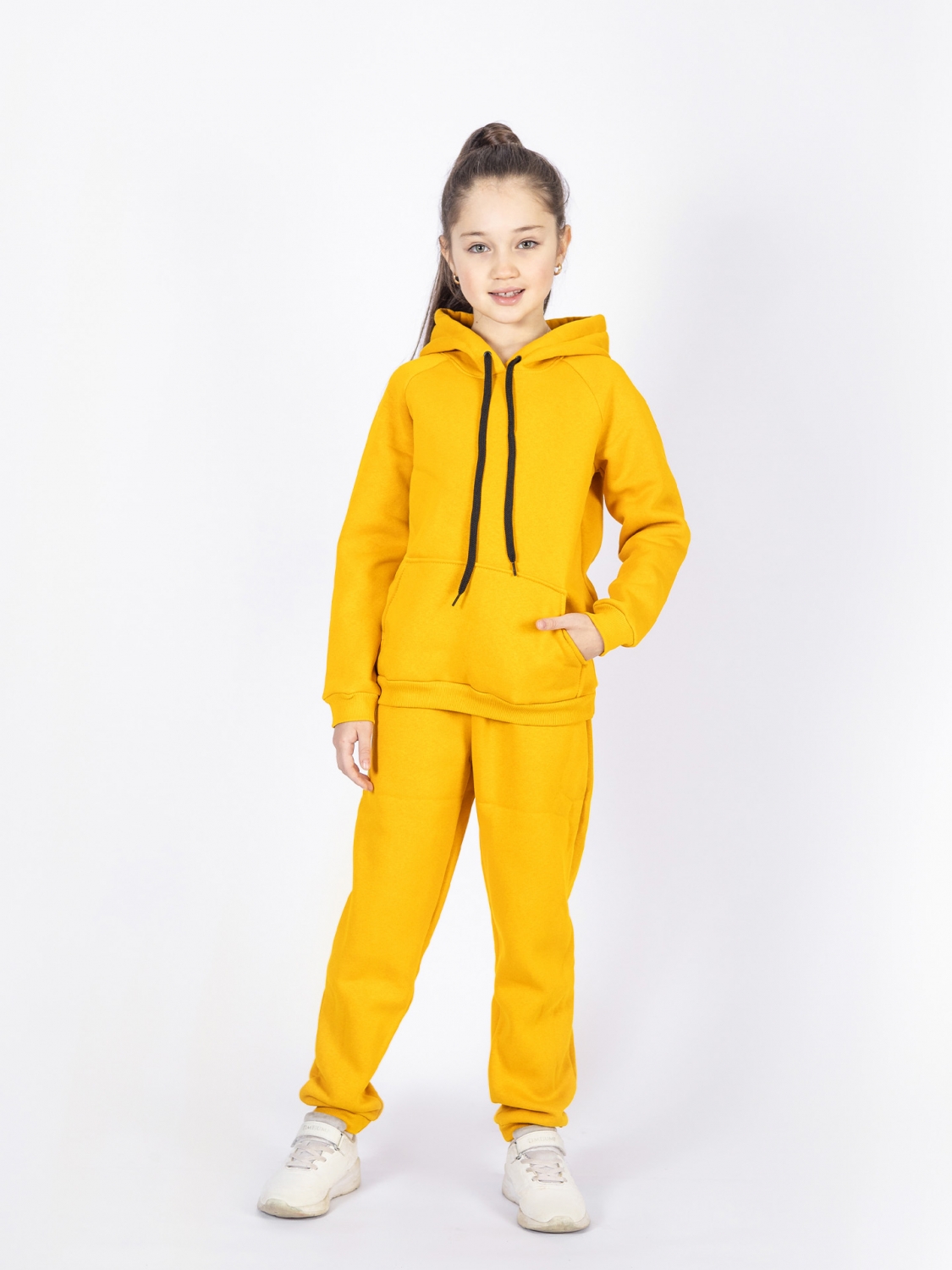 Купить оптом 296-А. Свитшот с капюшоном + Штаны, хлопок 65%, 35% ПЭ, 3-х нитка (начес) апельсин 122,128,134,140 в Новокузнецке