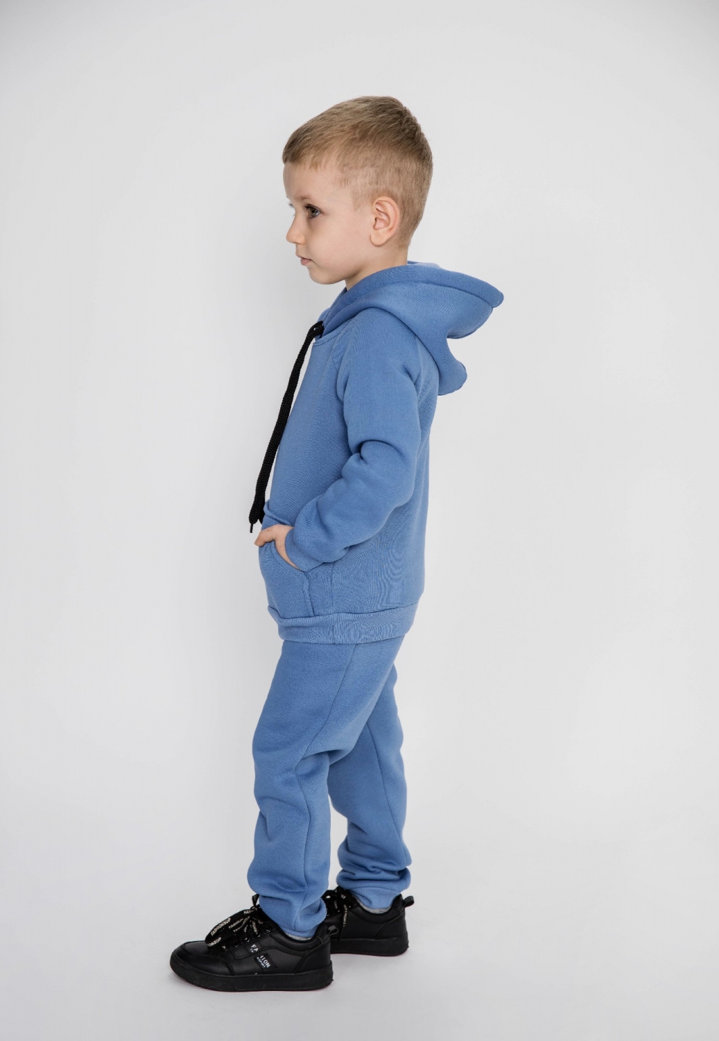 296-ДЖ. Свитшот с капюшоном + Штаны, хлопок 65%, 35% ПЭ, 3-х нитка (начес) джинсовый 122,128,134,140