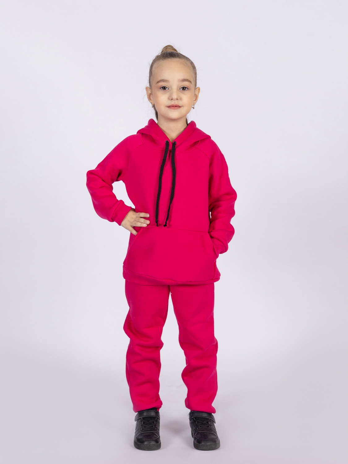 296-Ф. Свитшот с капюшоном + Штаны, хлопок 65%, 35% ПЭ, 3-х нитка (начес) фуксия 122,128,134,140
