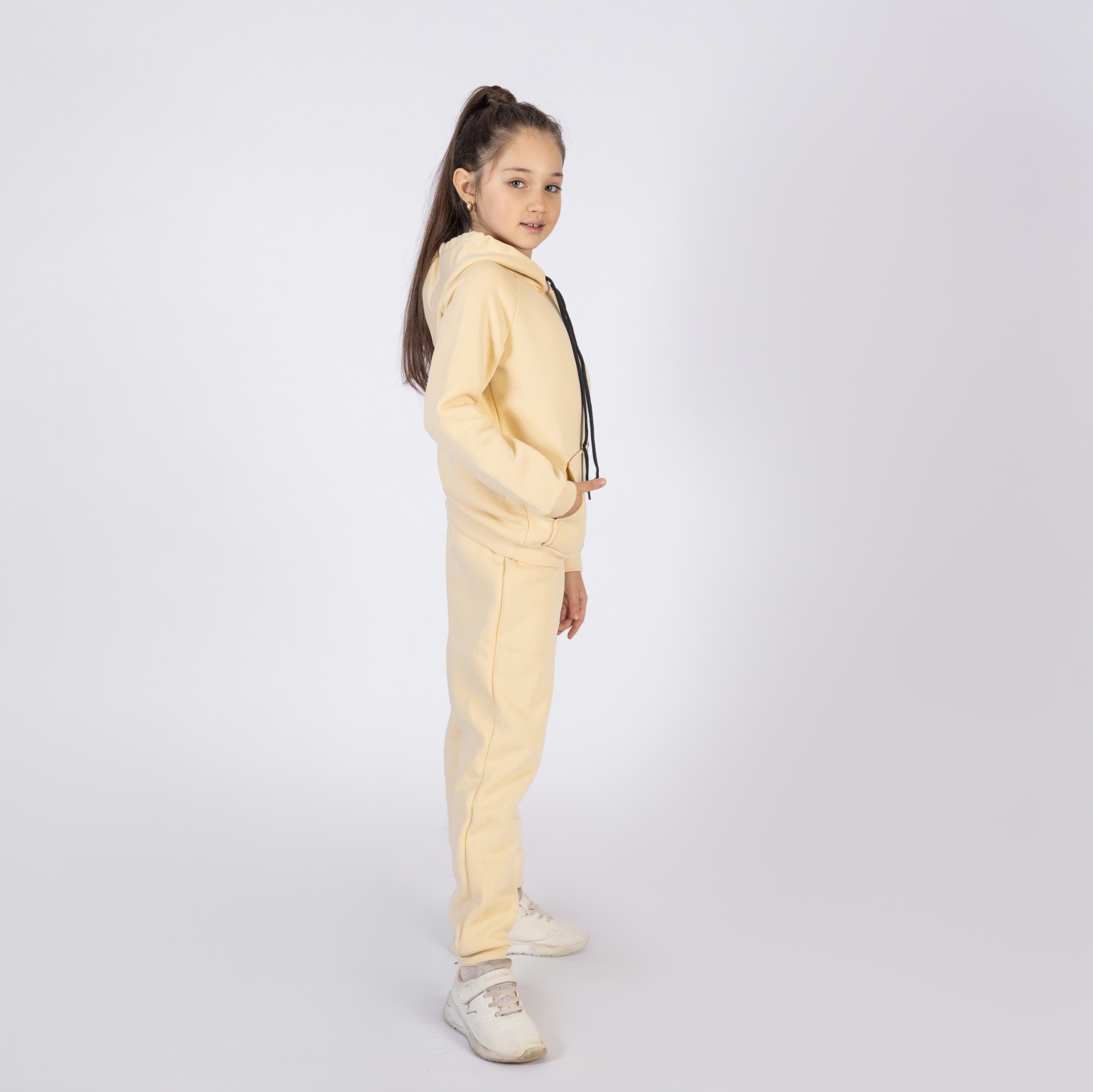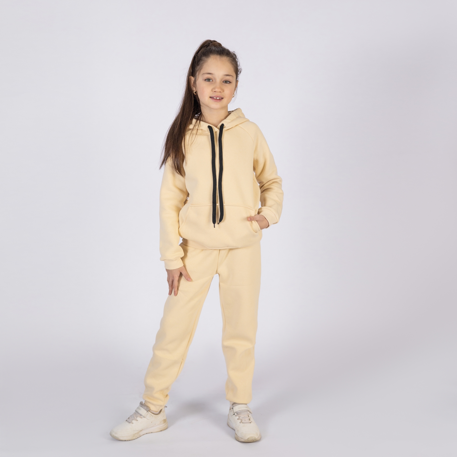 Купить оптом 296-СЛ. Свитшот с капюшоном + Штаны, хлопок 65%, 35% ПЭ, 3-х нитка (начес) сливочный 80,86,92 в Новокузнецке